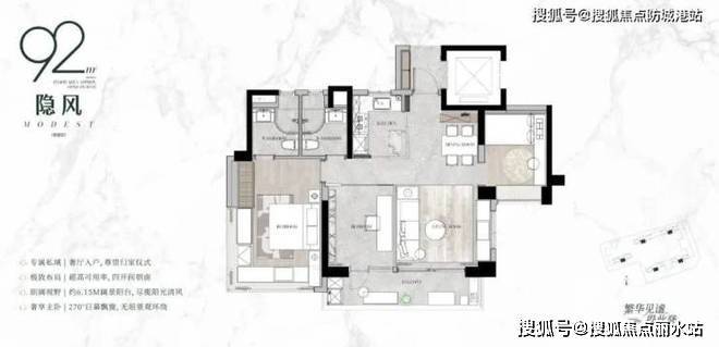 即使是项目最小户型也能做到私享电梯厅,配置6.15米大阳台。