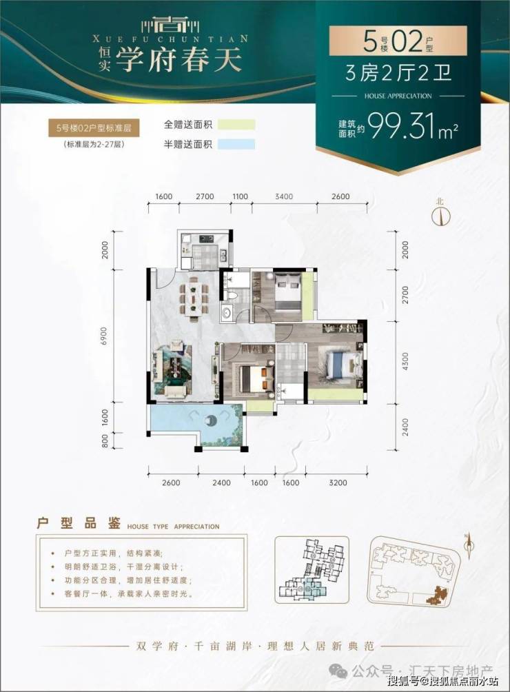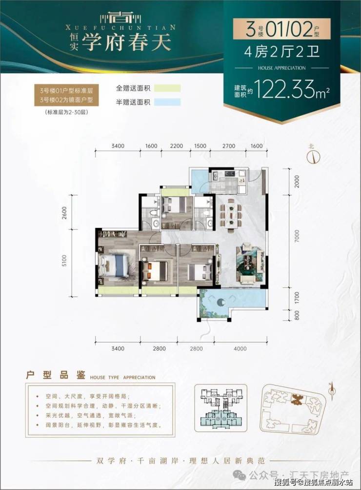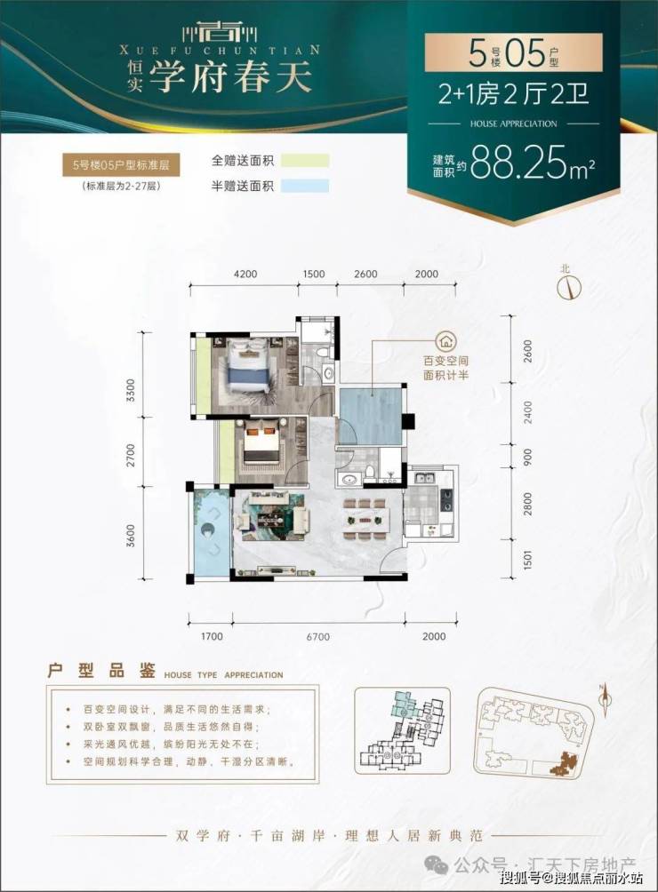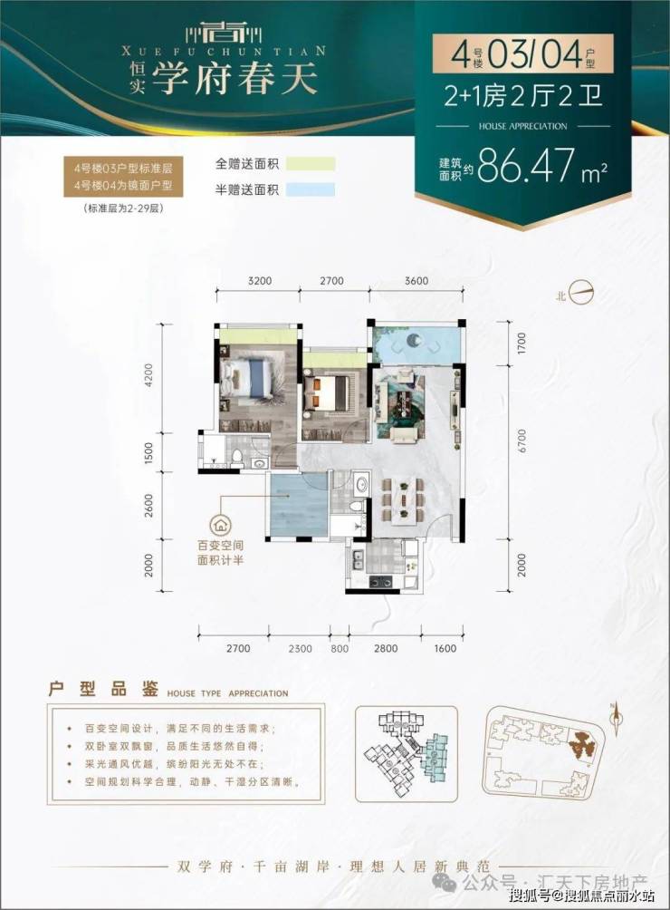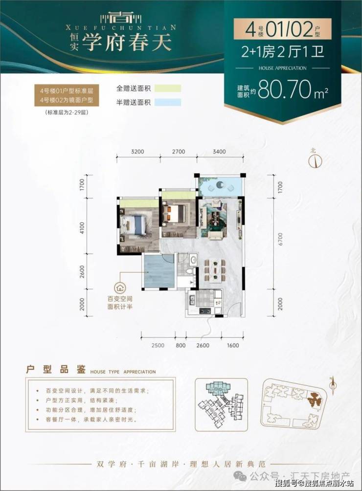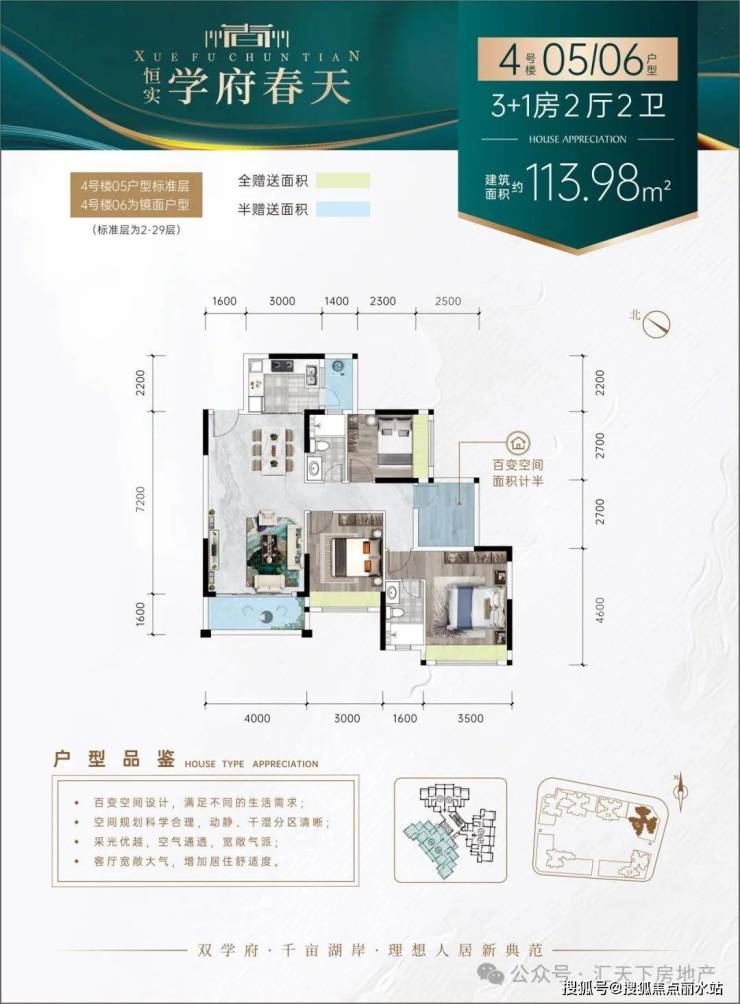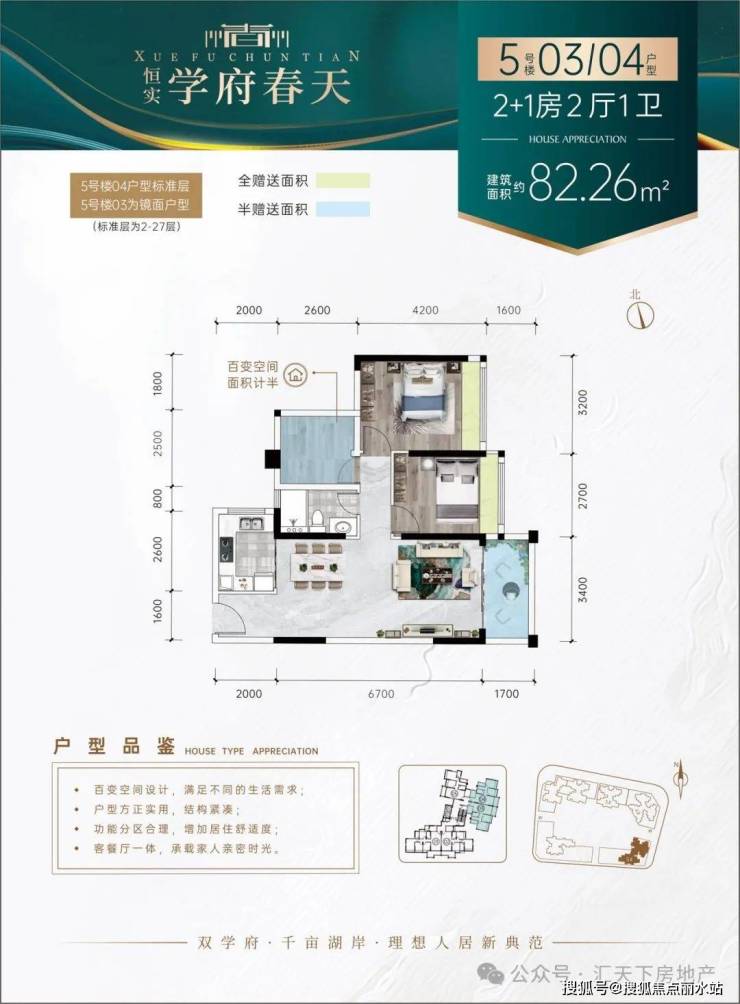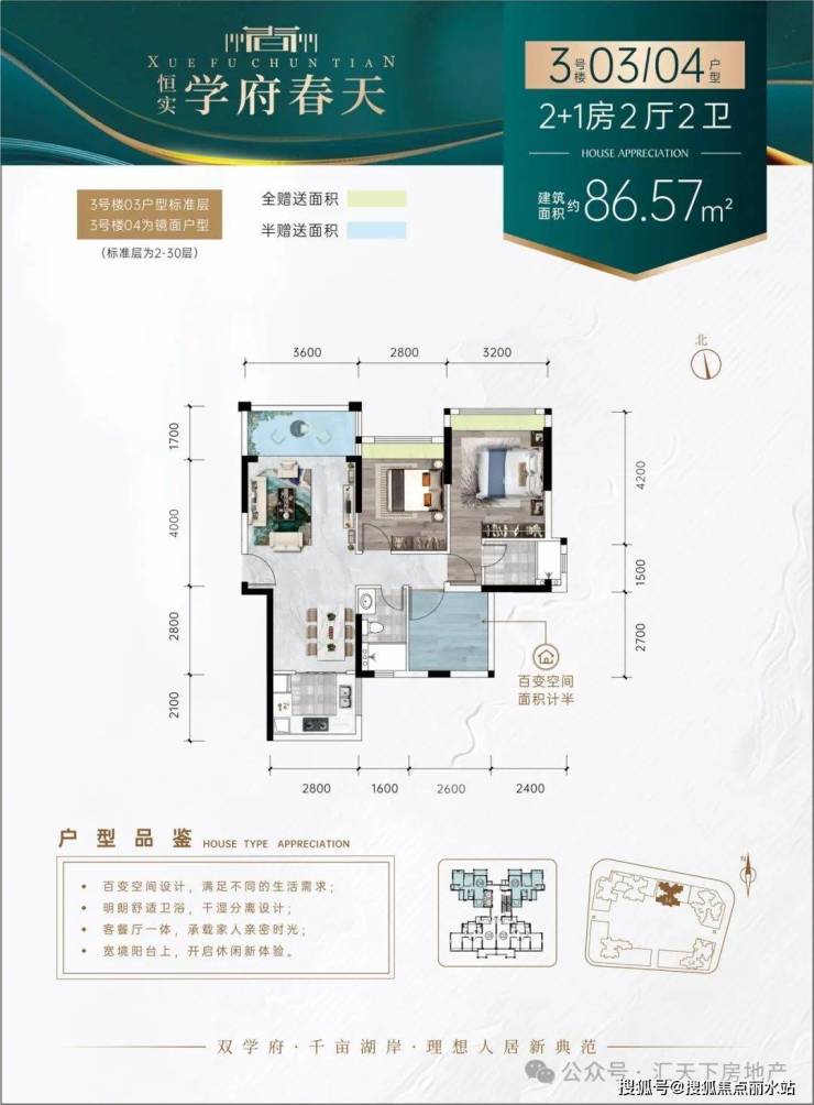 【理由5】百变户型——N+1百变户型,户型方正,增送面积多,全明设计,房间全飘台设计,视野开阔,动静分区,卫生间干湿分区
