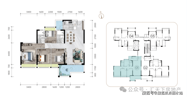 3#01/02户型:约122㎡ 4+1房2厅2卫