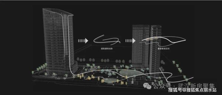 项目在整体规划上以“高山流水”为设计核心理念,以半包围式建筑结构创造“珠玉落玉盘”之形,打造“三境十二序”景观节点,汇聚大武昌天元雅韵之风。