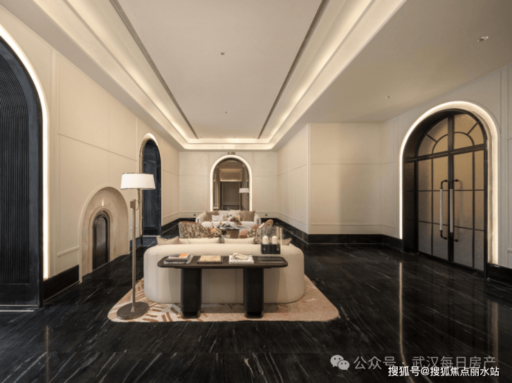 约1000㎡泛会所利用楼栋架空层打造开放式邻里空间。设置有“老钱风”的家庭娱乐休闲吧、行政酒廊、家庭艺术会客厅等,平衡商务与休闲。
