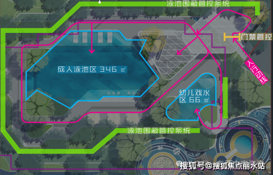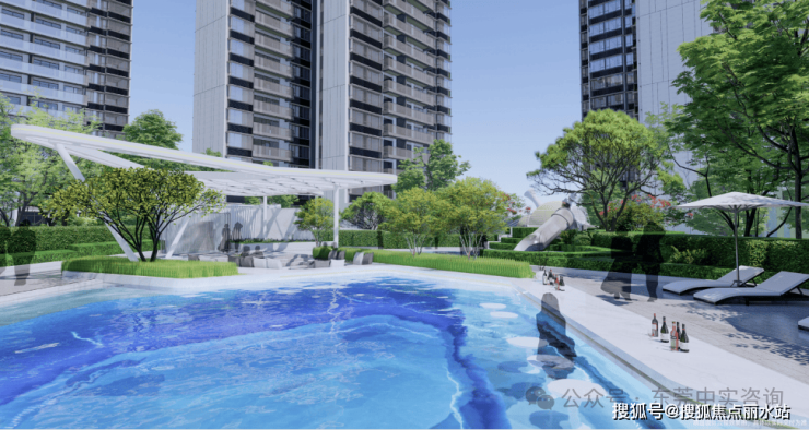 约412㎡分龄化光影水庭:儿童、成人分龄泳池空间,包含泳池会所,既是大人们畅游锻炼的主场,也是亲子互动的“水上乐园”,悦享亲水时光。