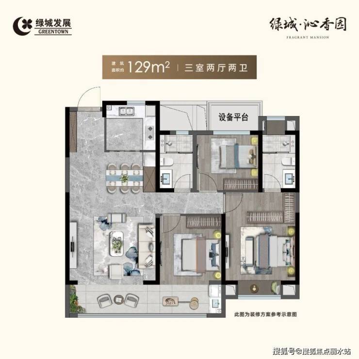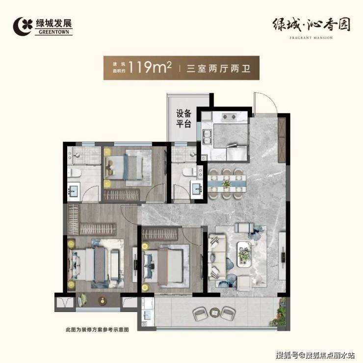建面约119/129㎡户型,均为三房两厅两卫房型,适合对生活的品质有追求的初步改善,主卧套房的配置,儿童房、书房等功能空间均能配齐。