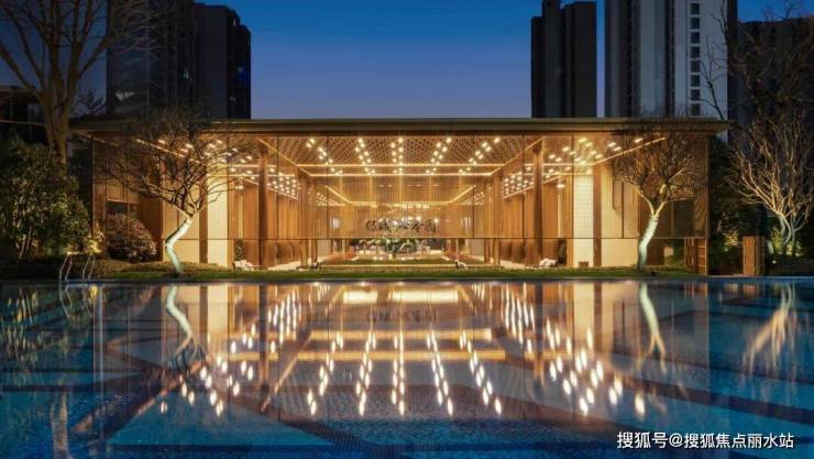 2023年12月,中心景观区正式开放,风雨连廊、锦鲤池+约600㎡无边际泳池+乌桕林、石榴林+主题式架空层等全部呈现。