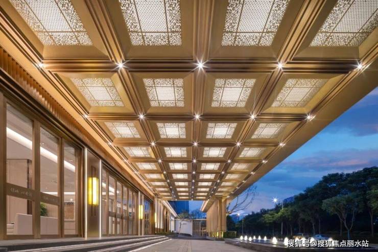 2023年9月,星级酒店式酒店式归家大堂正式开放,超百年罗汉松+百年朴树构造的外场归家仪式,大堂挑高近6米,整体面宽约45米,气场十足。