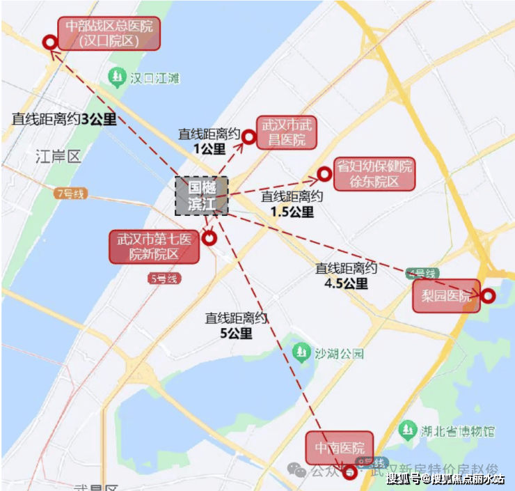 ➢【医疗配套】「三甲护航 呵护健康生活」项目5-10分钟车程内拥有包含中南医院、梨园医院、中部战区总医院、湖北省妇幼保健院、武昌医院等多个三甲医院,项目南边不远就是在建的七医院新院区,目前已经封顶,建成后业主看病就医也比较方便。