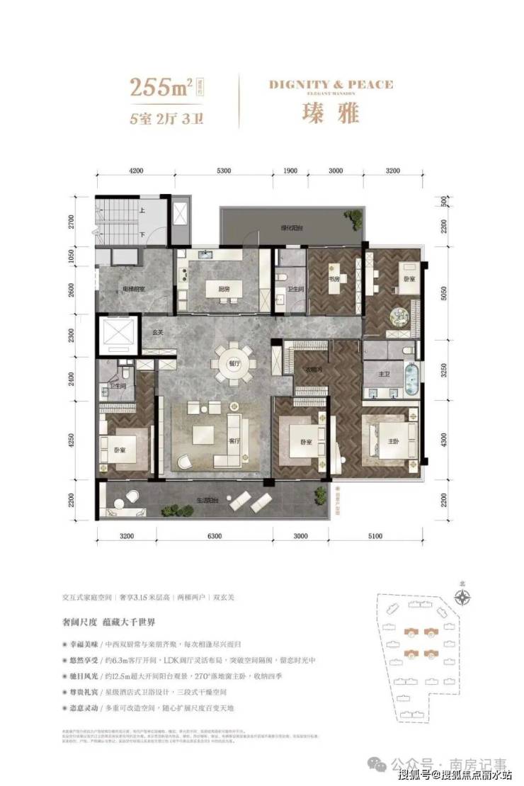 【瑧悦】5室2厅3卫户型,建面约255㎡