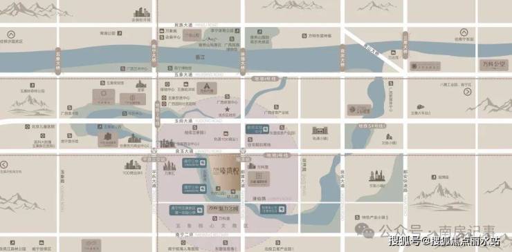 道路交通——项目周边拥有四横四横的交通路网,与总部基地咫尺之遥,通过良庆大桥、南宁大桥两座跨江大桥可快速前往东盟商务区及南湖片区。