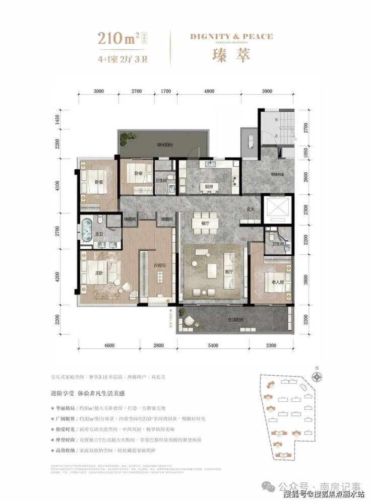 【瑧致】4+1室2厅3卫户型,建面约210㎡