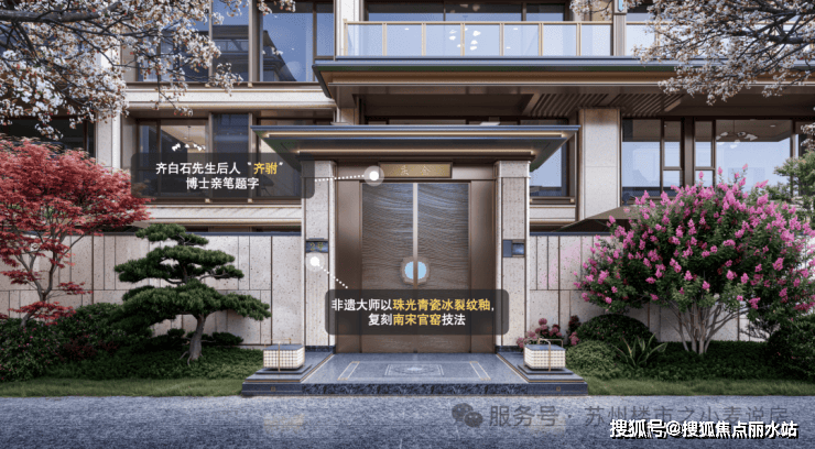 从齐白石曾孙女齐驸题写的门匾,到非遗传承人洪冰晖打造的青瓷门环,中国工艺美术大师、国家级非遗传承人张来喜先生以传统漆画工艺定制《姑苏繁华图》,建发邀国匠大师于门牌、门匾等细微处着墨,为每家每户定制独一无二的家族印记。