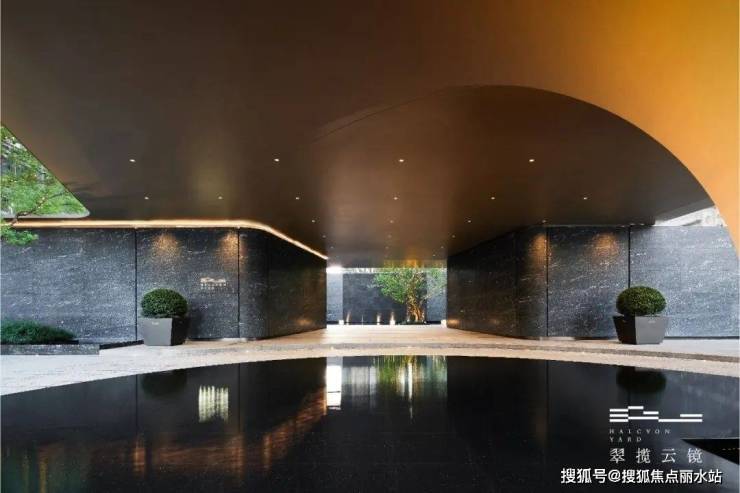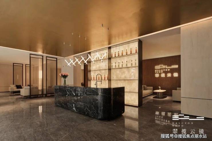 另外,罗马洞石、宇宙黑地面、玛瑙黄皮革纹背景墙、黄金丝绸吧台、白玉背景墙、福鼎黑石材路面、安哥拉黑整石水钵、印度蓝宝石路面、路易灰木纹大理石、木化石大理石墙面、水磨石地库路面、车行坡道劳斯莱斯级星空顶等高端材质也分布在项目的各个场景当中。