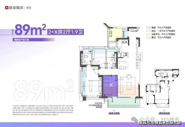 建面约89㎡,2+x房,270°山墙采光,小户型也能拥有“阳光梳妆台”;