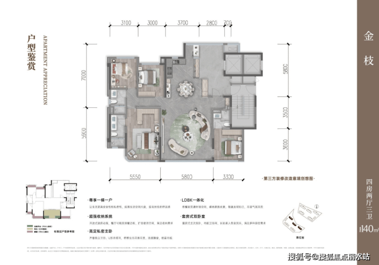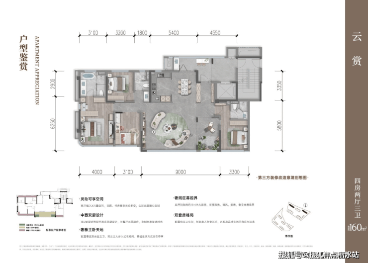 (9米开间,超宽视野,100米楼间距,可做五房,实得约180平米)