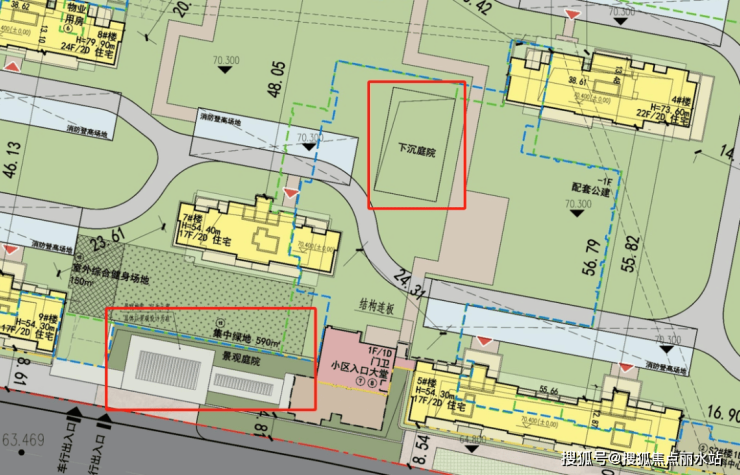 4、小区南门附近有景观庭院和下沉庭院,并标配社区会所。