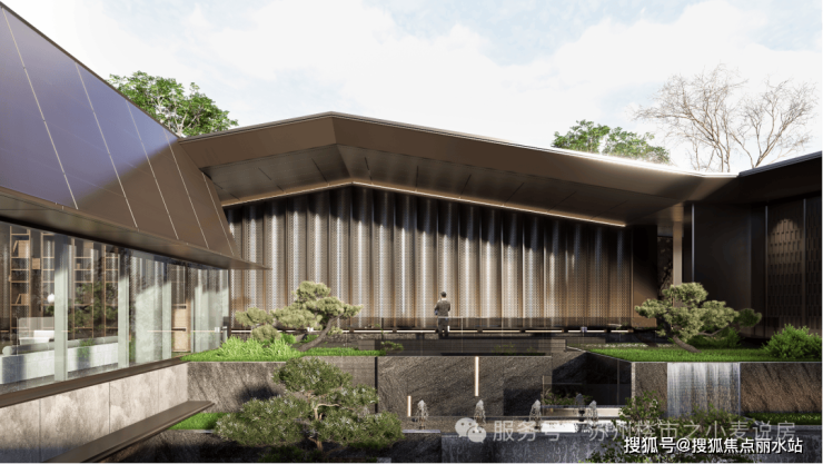 日清设计的宋照青亲自执笔,创造性地用现代东方极简风格,不仅极大尊重了苏式传统和文化,打造出340㎡下沉庭院,更用宽10米,高4米的水瀑打造出会所的立体空间。