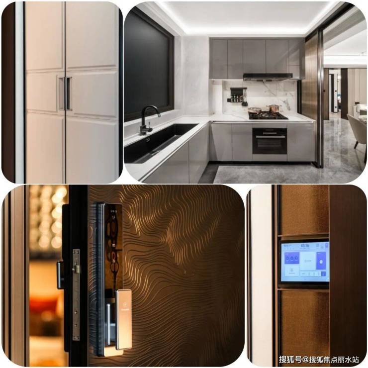 再比如进门的重工铸铝装甲门,水波纹双饰面门板,搭配智能六合一门锁。