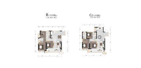 建筑面积约98-120㎡全明三居,南北通透,主卧套房、独立玄关、通厅阳台,满足城市精英对空间与功能的双重期待。