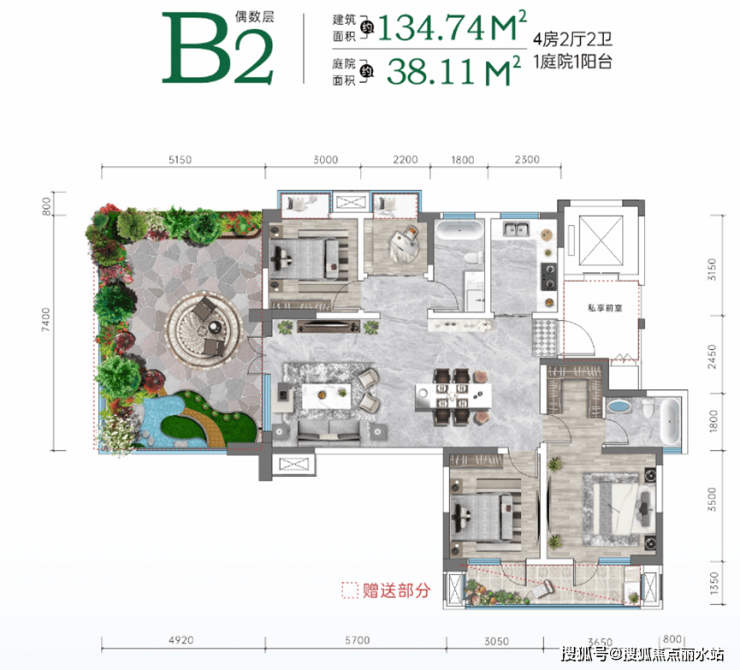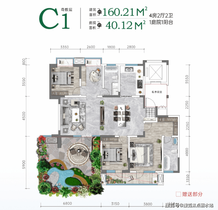 该项目共7栋17层迭代生态住宅,1.89超低容积率,两梯两户纯边户,尊享5㎡私享电梯前室,面积有121、134、160平米多种户型,最大南向面宽近20米,五开间朝南,每户赠送挑高6米、27-40㎡超大空中花园,交付时通过覆土管理,在露台可打造私属后花园,是伍家岗区首个高品质城市森林花园住宅。