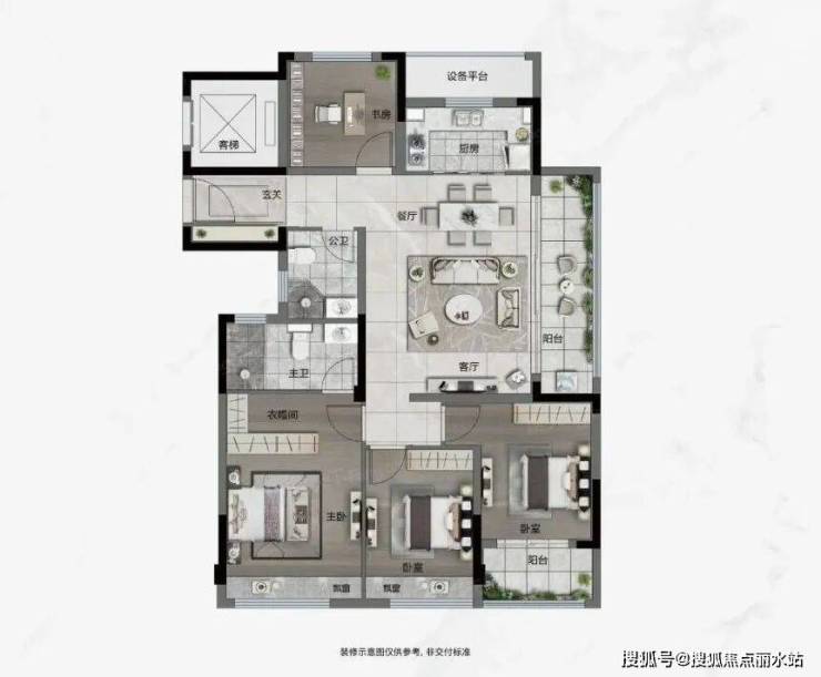 此外,公共活动空间,也注重健康生活的配置,有健身跑道、儿童乐园、网球场、不同主题架空层等,兼顾每一位业主的社交、亲子需求。