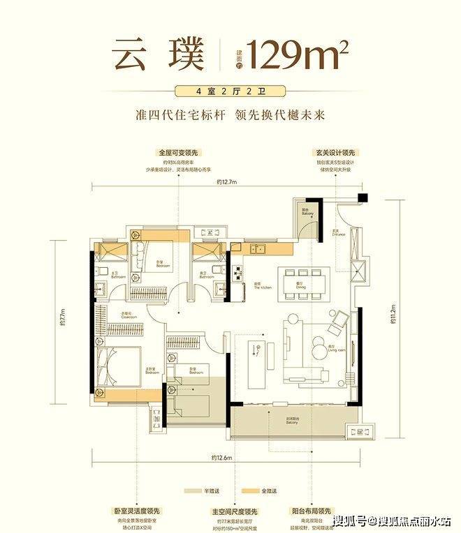 天创云和樾营销中心电话:400-778-0670该四房两厅两卫的户型,拥有约129平方米的建筑面积,提供了宽敞舒适的居住环境。其特色在于大四房设计,四开间朝南,南向面宽达到约6米,充分沐浴阳光。此外,南北双阳台加大方厅的布局,使得室内空间显得格外开阔。全屋飘窗设计,共计5个,且面积全部赠送,进一步优化了居住体验。南向次卧和阳台也享受到了面积赠送政策,让生活更加惬意。