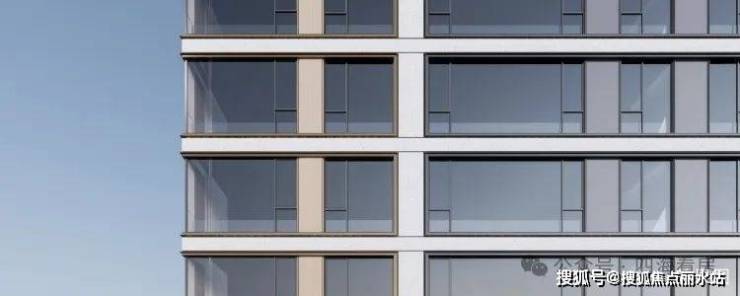 ②比肩一线城市豪宅的公建化立面形象:类公建现代都市颜大面积玻璃幕,搭配金属铝板和真石漆涂料,使得整体建筑大气简洁与线条流畅,建筑现代都市感气息浓郁。