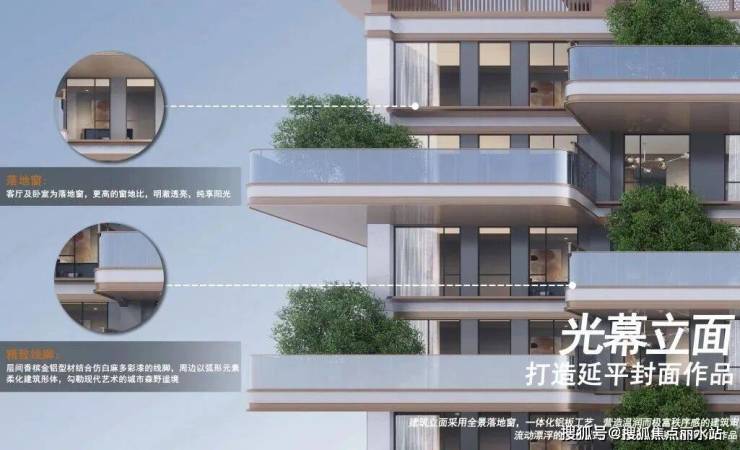 项目打造立体花园,创新户型设计,将客厅、卧室与空中花园融为一体,颠覆了传统室内外空间的界限。充分利用立体生态住宅的空中花园优势,通过超大面宽、自由舒展的设计,拓宽观景视野,增强内外空间的连贯性。让住户在全新维度中,尽享亲近自然、感受大自然的美好。