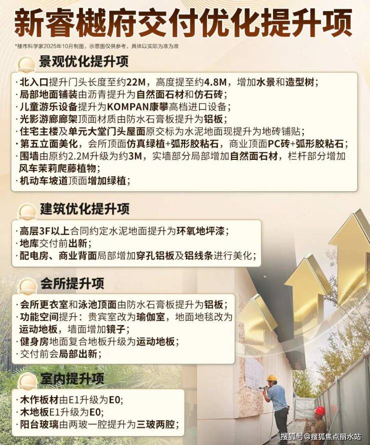 据不完全统计,新睿樾府临交付前,还主动对景观、建筑、会所、室内等四大类目数十个部位进行了优化提升。