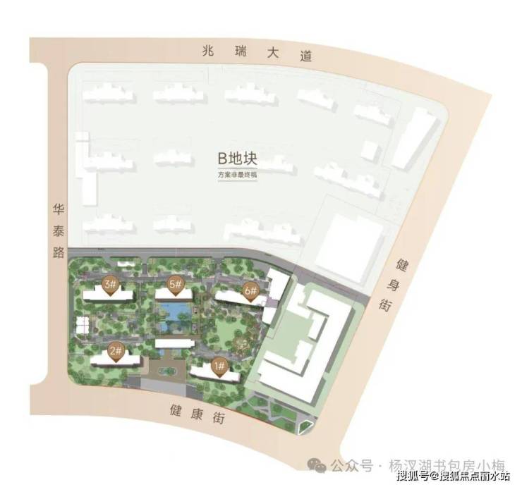 B地块(二期)总用地面积约6.5万方,居住用地面积约5.9万方,总建筑面积约24万方,住宅建面约15.6万方,容积率2.85,总户数约1293户。