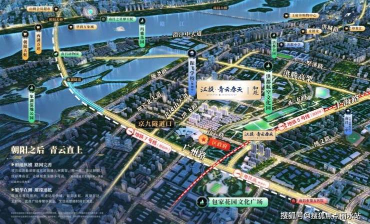 项目东临上海南路直通老城,西接广州路下穿京九铁路隧道工程(在建中),建成后可直通九州高架,连接朝阳、红角洲等板块;临近预留地铁双出入口(规划中),加速衔接南昌城区各个板块,通达性与便捷性兼具。