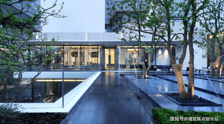 半国标级的无界泳池,可享受恒温体验,碧玉琉璃般的水色,透过大面积玻璃幕墙与下沉水院的互相映照,漾开自在的微波;