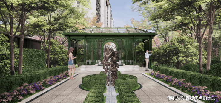 从入社区到入楼栋,打造门礼、入园、归庭三重礼序,营造曲折回环的游园动线。