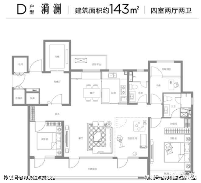 安澜地没有落入“用更多的房间装更多人口”的俗套,而是采取五大独立系统+三大百变空间的搭配,来满足多代际家庭的使用需求。以143㎡户型为例,南向四面宽,四室双明卫;约9㎡独立入户空间、约7.2m宽幕横厅、近10m跑道级阳台、南向约14m大面宽,奢华级主卧套房,让客户享受真正的改善空间。