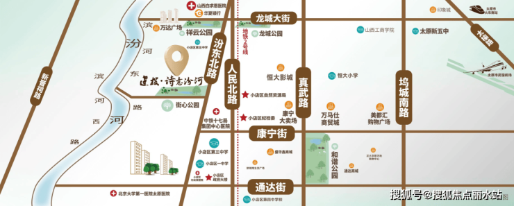 距离地铁2号线电子西街站约480m,可无界通达太原南北。周边滨河东路、南中环、汾东路、龙城大街、坞城路、太榆路等多条主干道交织,快速链接南站、武宿机场等枢纽。