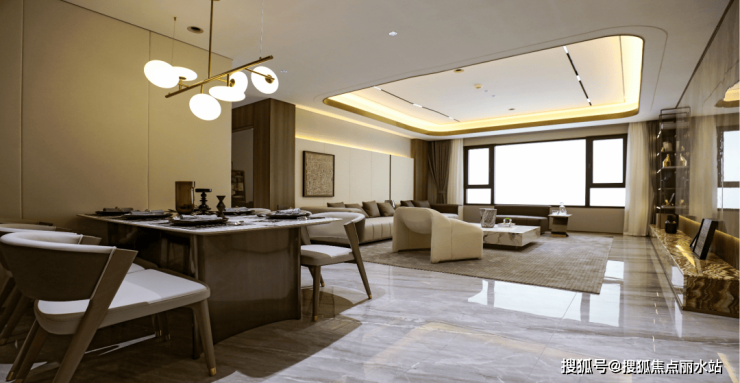 萃取传统精华,用现代手法进行再设计,将中式元素与现代材质巧妙兼柔,匠造“一环两轴三园九境”。一条游园道、两道礼序轴、三大诗意园,一展汾河畔诗意园林风韵,多重主题景观实现全新生活体验。