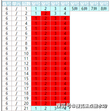 13号楼一个单元,3梯4户,43层,户型分布如下: