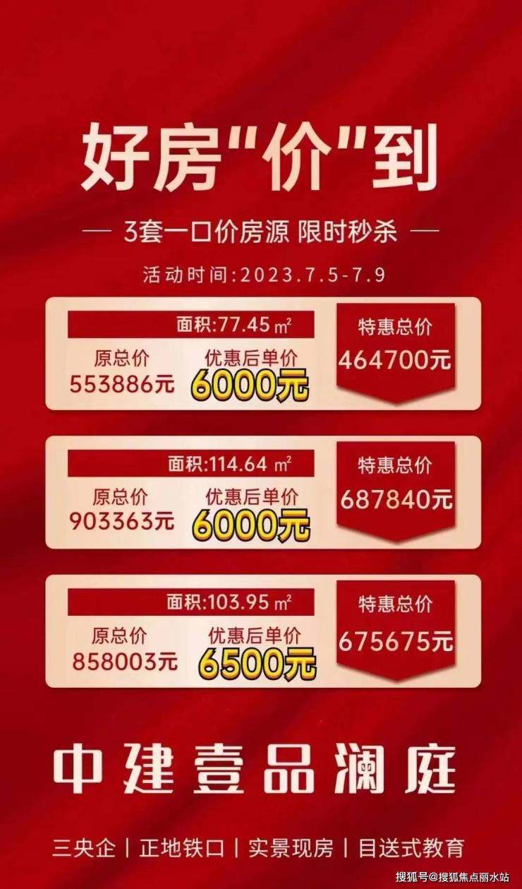 中建壹品澜庭(经开区—小军山):目前主推13号楼建面约109-121㎡房源,备案均价9398元/平,折后均价约8000元/平,另目前推出有3套一口价特价房,单价6000-6500元/平。