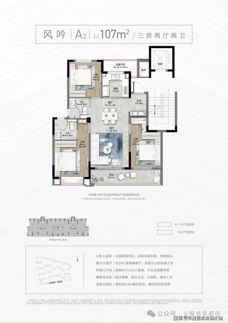 【建面约107㎡(A2)三房两厅两卫】