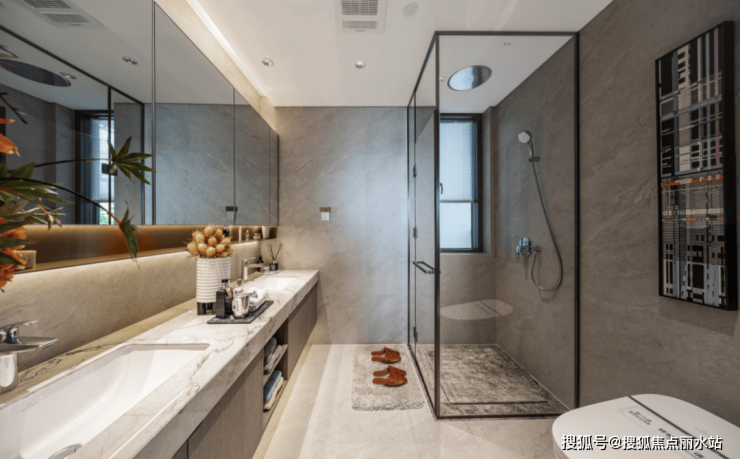 所以,我们在武汉长江天地看到了约29°柔光面岩板/地砖,它既避免了亮光瓷砖易产生的过度视觉刺激,又解决了哑光瓷砖反光少易带来空间光线暗沉,大户型还采用约1200X1600mm的超大规格,营造出视觉舒适且极具艺术情调的空间;
