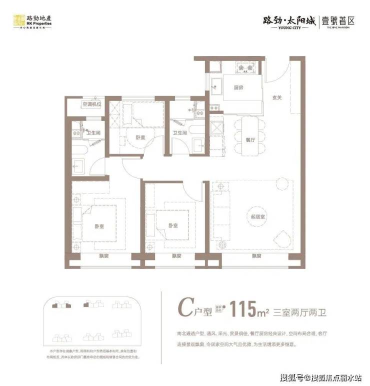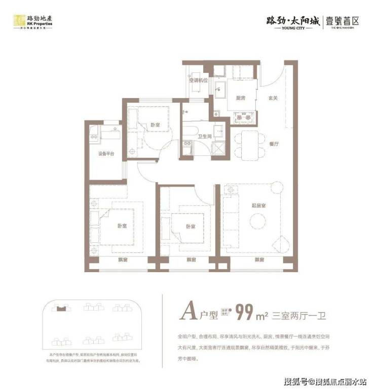 在室内空间打造上,壹号著区打造了太阳城内首个全三居社区,取消了90㎡以下的户型,建筑面积分别为约99㎡、109㎡、115㎡、127㎡。