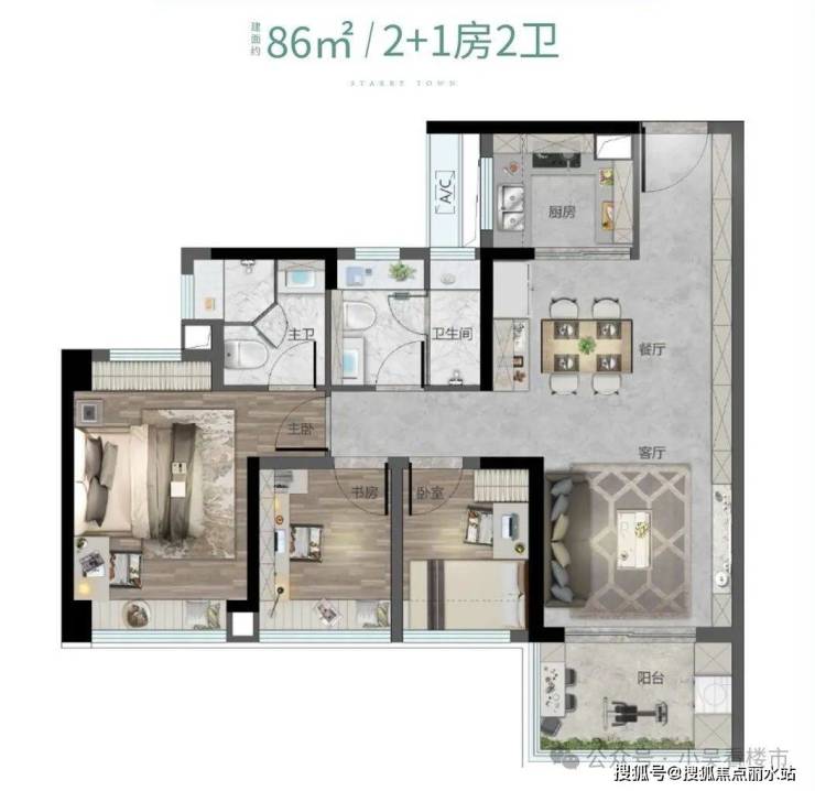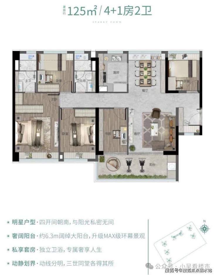 产品方面,越秀·大学·星汇城同样有足够精彩的设计,一来,全社区通过扭转楼栋实现景观视野最大化,推开窗户,不是校园景观就是园林景观,二来,从多维度升级产品,所有户型都是全南向四面宽,室内采光和通透性都加分不少。