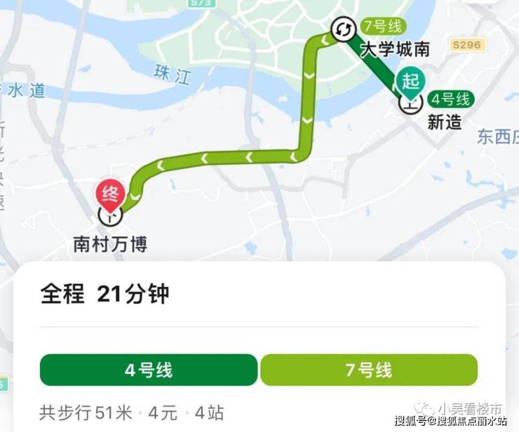 地铁前往万博:步行至地铁新造站约13分钟,乘坐4号线到大学城南换乘7号线,全程3个站,总共耗时34分钟左右。