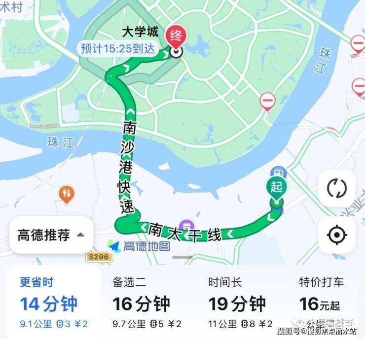 自驾去大学城:走高速的情况下,上南大干线转南沙港快速,全长9.1公里,高速费2元,耗时14分钟左右。