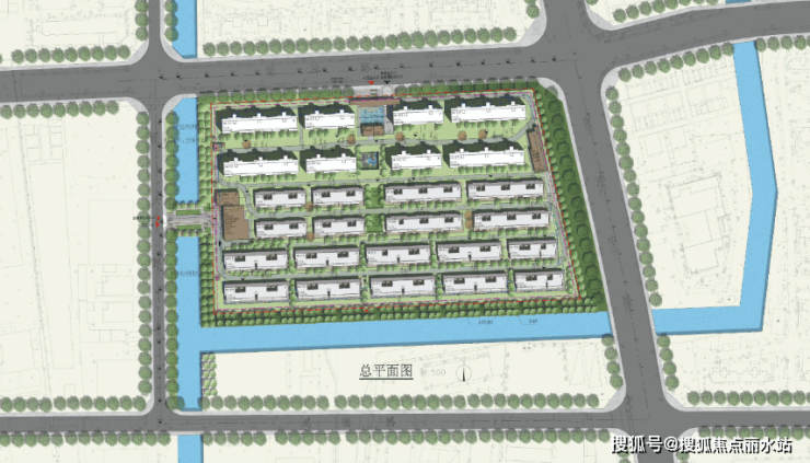 项目规划显示,社区将采用中轴对称式布局,两面环水,在北侧南厍路和西侧经六路上分别设置地库和人行出入口,定位为高端社区。