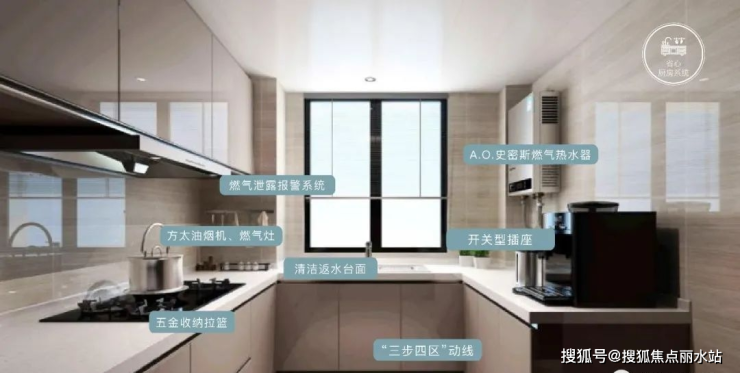 华地·青樾庭厨房精选一线厨卫品牌方太油烟机与摩恩五金收纳拉篮、水龙头,让厨房整体洁净清爽;U字型台面设计,符合人体工学的特点;洗菜、切菜、烹饪,三步之内动线一气呵成;冷藏区、烹饪区、洗涤区、多功能储物操作区,四区巧妙的整合与分离,方便烹饪的动线及操作。清洁返水台面设计,防止台面污渍、水滴随意滴落与浸入柜体,还居者一个干净的厨房环境。