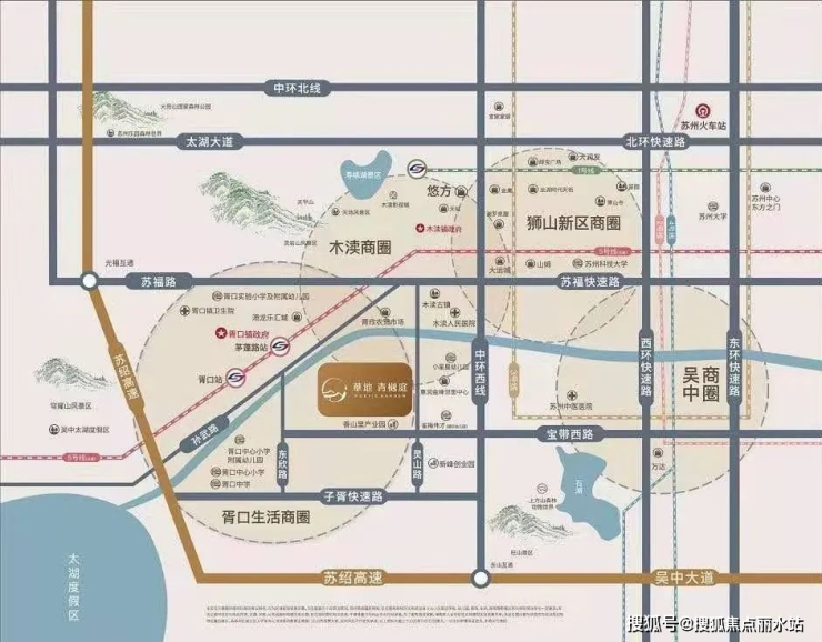 交通:三横(苏福路,宝带西路,子胥快速路)两纵(中环西线,灵山路)一轨(地铁五号线)