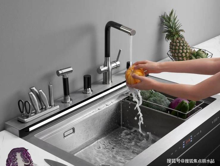 厨房的九牧水槽洗菜盘,拥有纳米黑科技专利,采用无死角、无焊接设计,不易积水,不易锈。