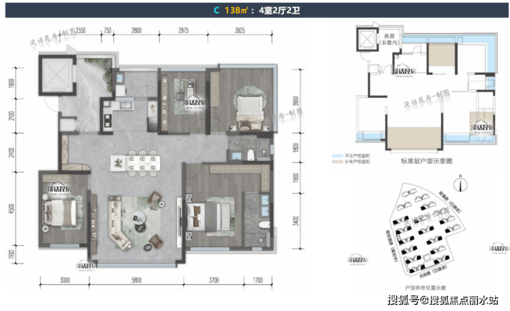 【138㎡ 】:4室2厅2卫,端户,赠送面积约31㎡,带入户花厅;