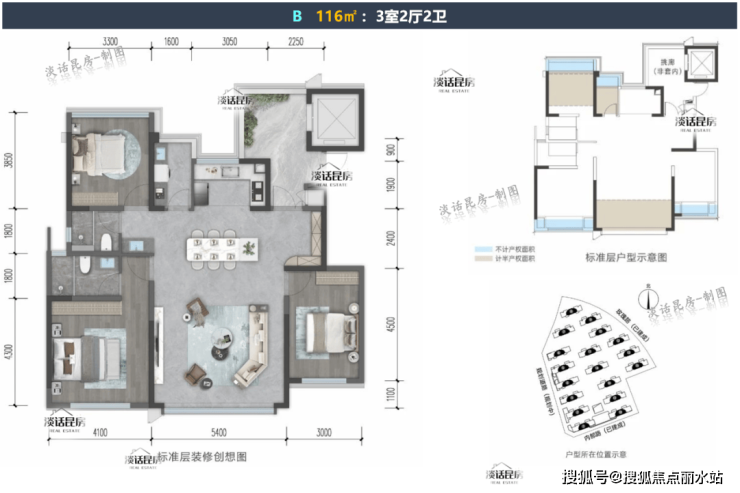 【116㎡ 】:3室2厅2卫,中户,赠送面积约21㎡,带入户花厅;