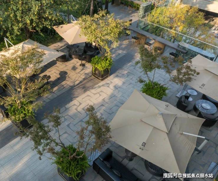 一旁,下沉卡座依景而设,自成一隅休憩之所,叠级水景潺潺而下,水花飞溅,仿若碎玉跳珠。花境沿园路蜿蜒,与周边植物、小品巧妙呼应 ,构成一幅幅美妙画卷。