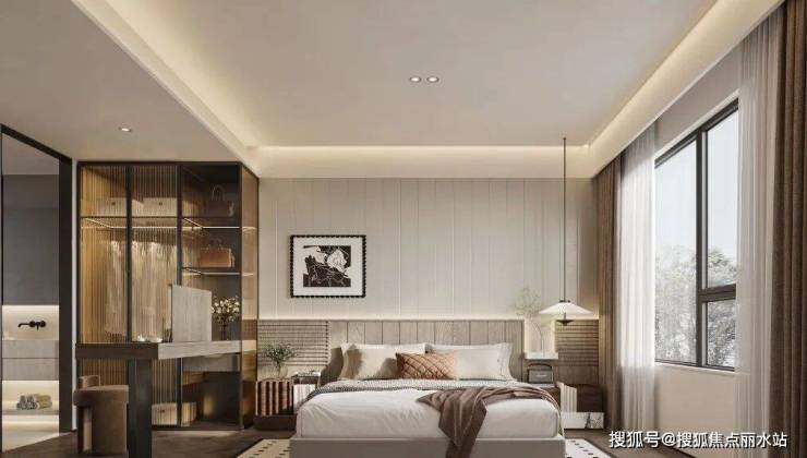 主卧大套房,站在飘窗前,楼下的满园景色皆在眉眼之间。这里设计了一个非常人性化的使用场景:卧室内独立小水吧。在这儿配备迷你饮水机,半夜起来想喝水,连厨房都不用去了,再也不用担心影响睡眠较浅的老人和孩子了。